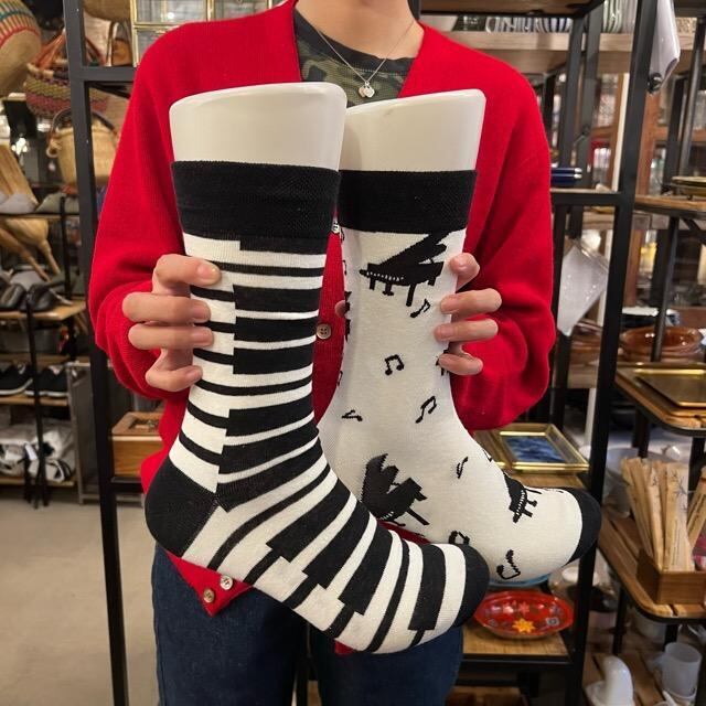 TOPANGA SOCKS Men's Piano socks メンズソックス ピアノ 鍵盤 グランドピアノ アシンメトリーソックス 派手ソックス ハイソックス プチギフト