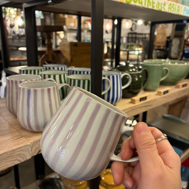 Thailand Switch mug 370ml 3color スイッチマグカップ 全3色 パープル グリーン ブルー タイ 電子レンジ可 食洗機可 TAMAKI 湯呑 ストライプ 耐熱