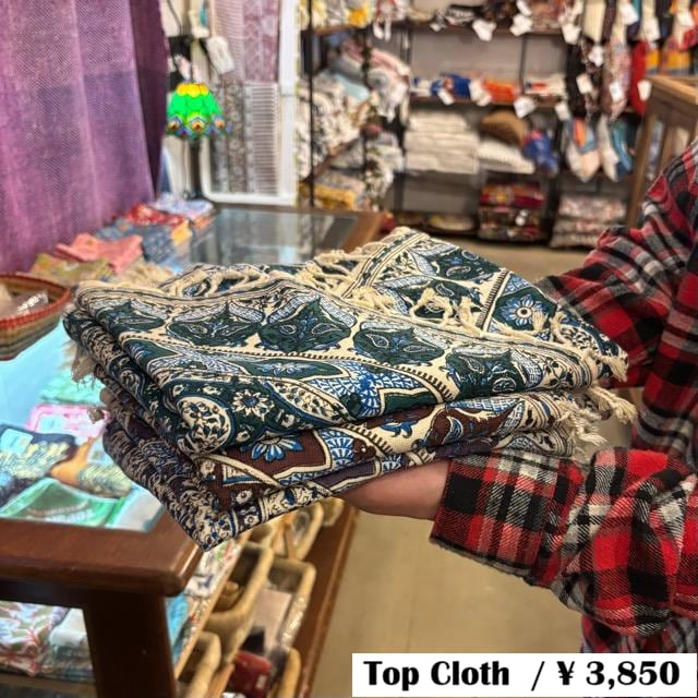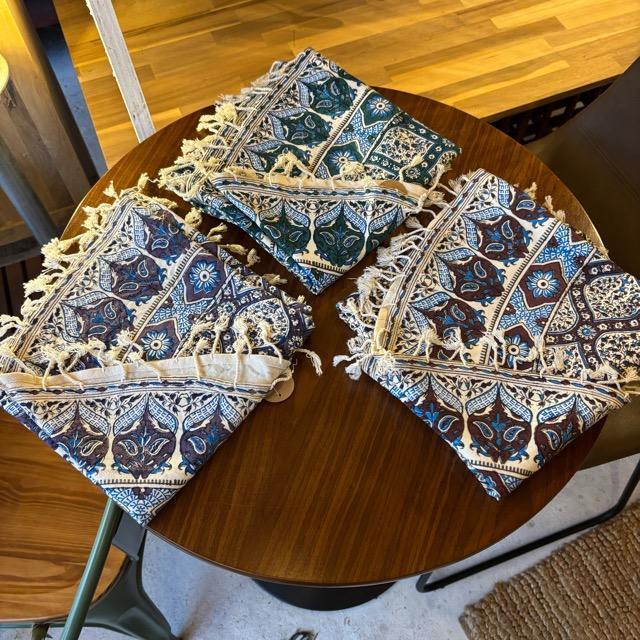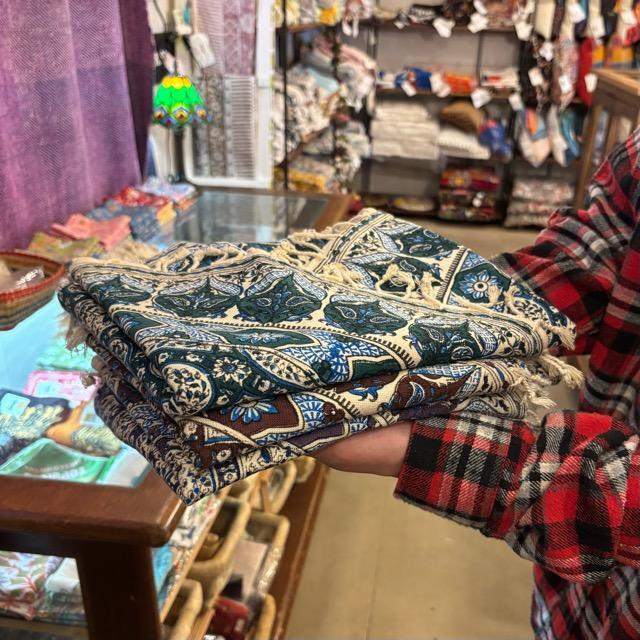 木製のブロックを重ねて染め上げたハンドプリントの更紗です。