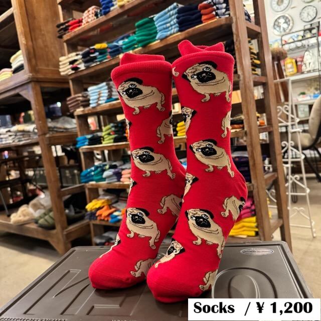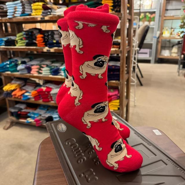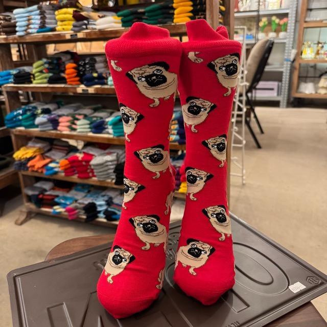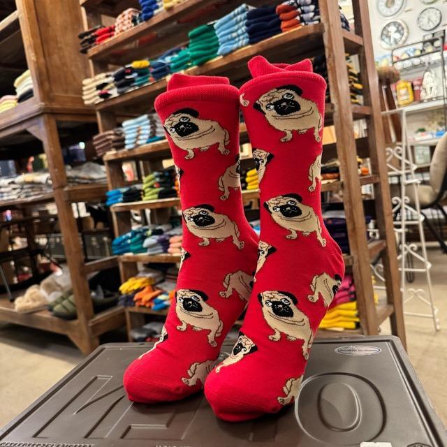 TOPANGA SOCKS Men's パグ 靴下 メンズソックス 派手ソックス 犬 いぬ イヌ ドッグ アニマル レッド 足元ファッション プチギフト