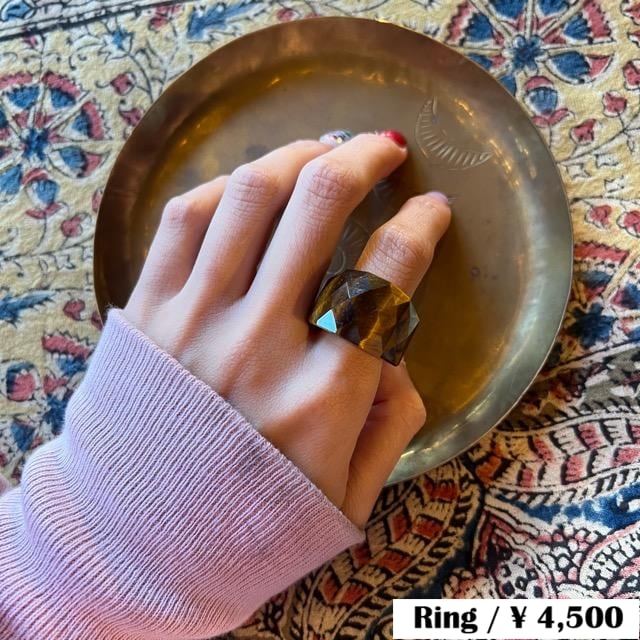 天然石のような多面体デザインが特徴で、光の当たり方によってやわらかく表情を変え、指先に繊細なニュアンスを生み出します。