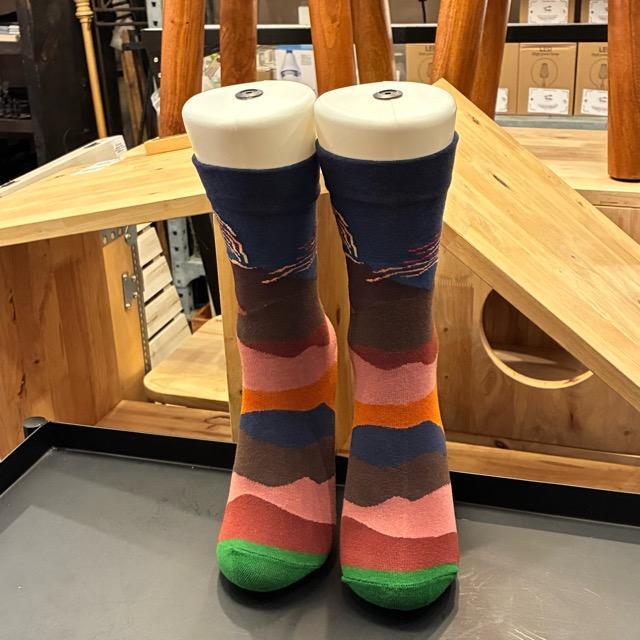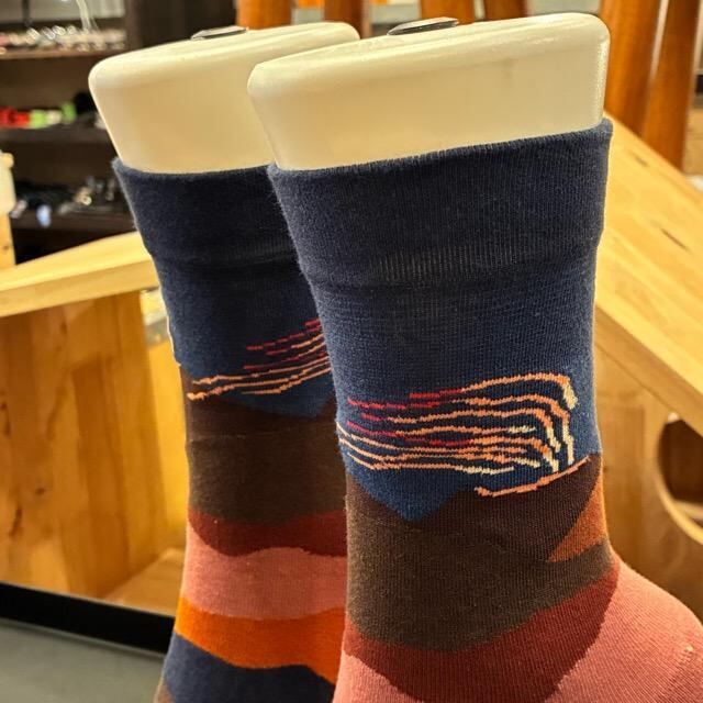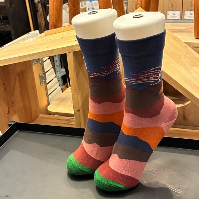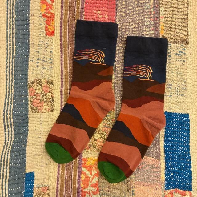 TOPANGA Socks Lady's Art Socks Volcano アートソックス ボルケーノ ネイビー レッド 火山 クルーソックス レディースソックス 靴下 ギフト