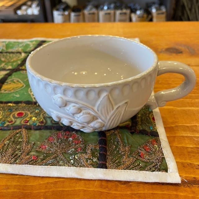 白磁のやわらかな佇まいに、可憐なスズランのモチーフがそっと咲くスープカップ。