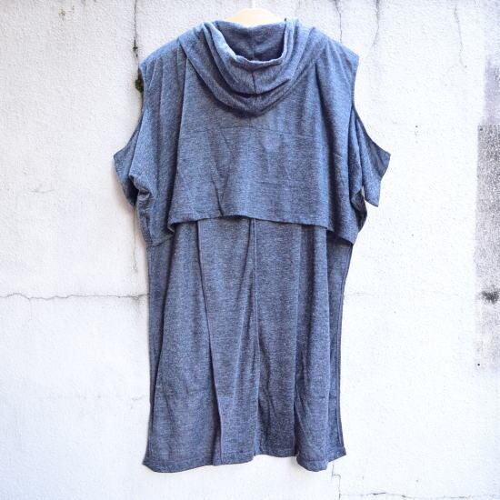 ADHOC アドホック フード付きアシンメトリーベスト グレー