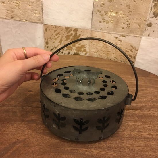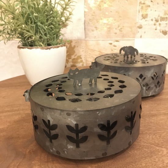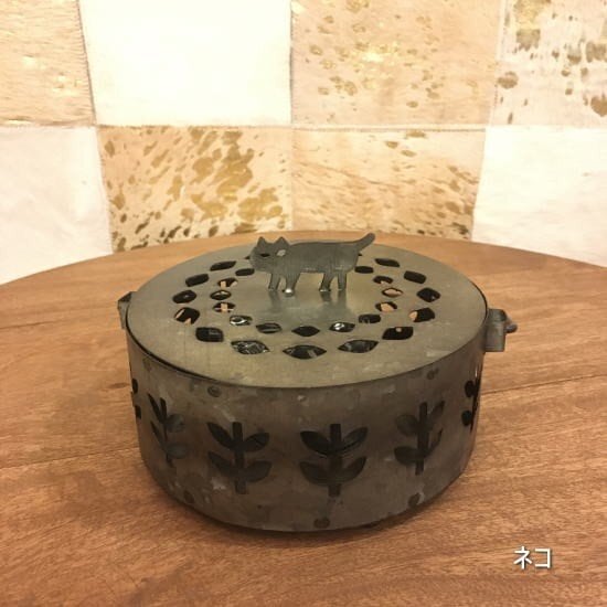 猫や象のモチーフが可愛いブリキ製の蚊取り線香ホルダー。