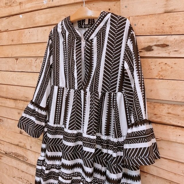TOPANGA Lady's 幾何学ストライプミニドレス ブラック