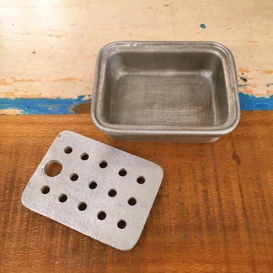 ヴィンテージアイテムのリプロダクトで製作されたアルミ素材のソープディッシュ。