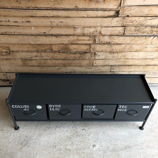 横型4引き出し付きスチールチェスト グレー【代引き発送不可】