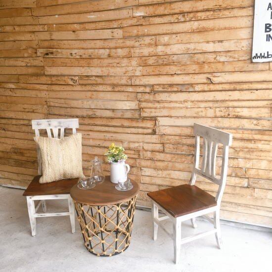 木製のナチュラルな雰囲気なので、ラタンのサイドテーブルやジュートマットとの組み合わせも素敵です。