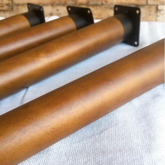 組み立てテーブルとなると鉄脚が多いのですが、これはどんな天板にも取り付け可能な木製脚。