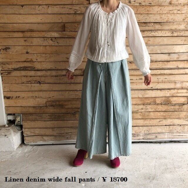 Universal seven ハードマンリネンデニムワイドフォールパンツ ライトブルー【送料無料】【SALE】
