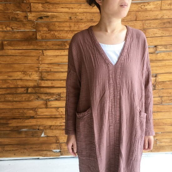 Topanga Lady's Vネックスリットリネンドレス パープル
