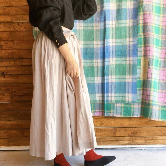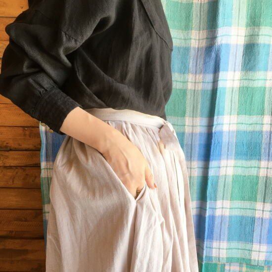 秋冬のコーディネートにも馴染むリネンコットンのラップスカート。