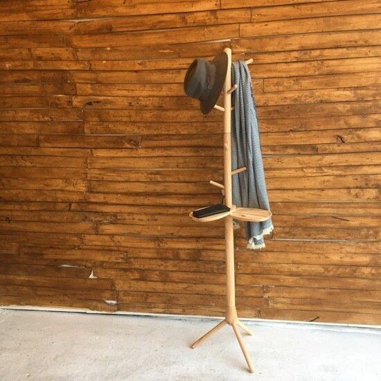 ナチュラルな雰囲気の天然木、ラバーウッドを使ったポールハンガー。