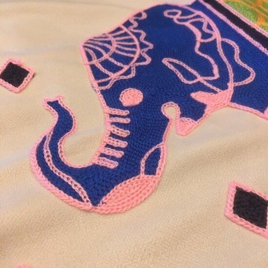 どうぶつ刺繍クッションカバー 45×45cm エレファントC