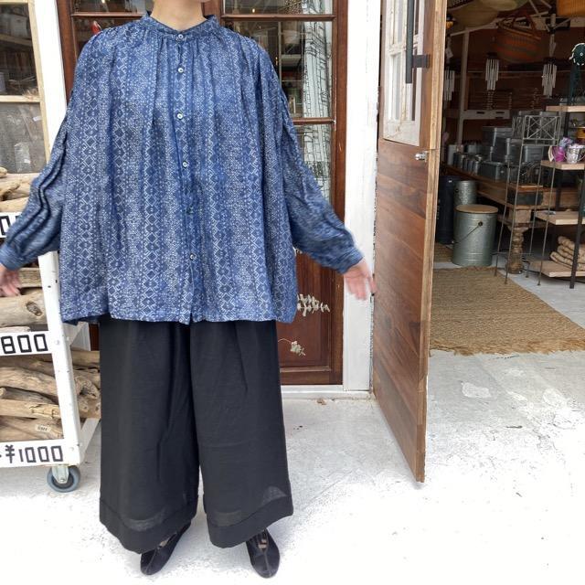 ICHI Antiquites(イチアンティークス) ジャガードインディゴリネンブラウス インディゴ×ナチュラル