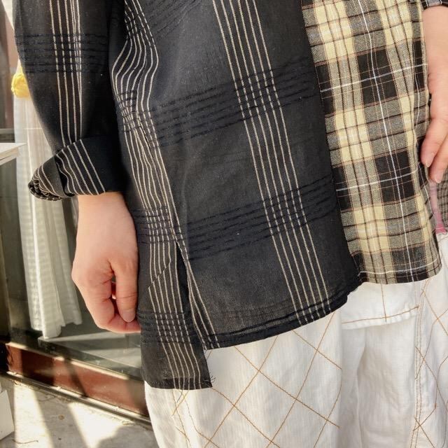 いろんなチェックパターンが楽しめるパッチワークシャツです。