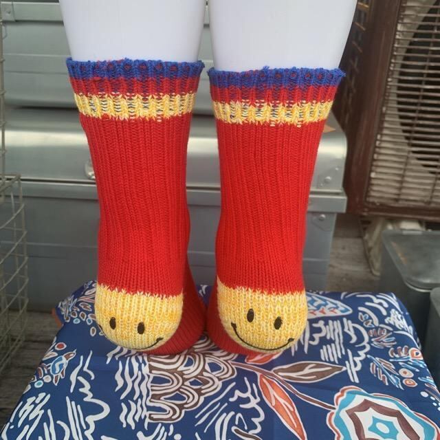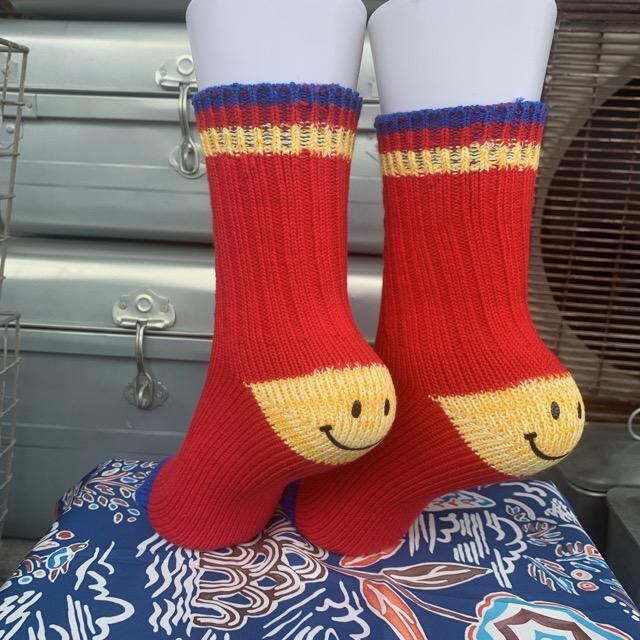 かかとからにこちゃんがさりげなく覗く、ユニークなソックスです。