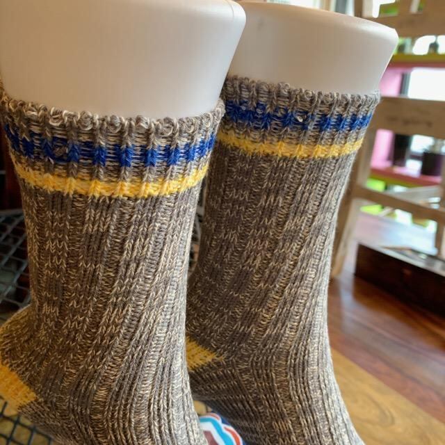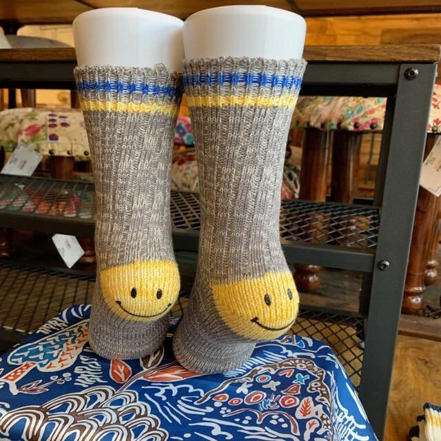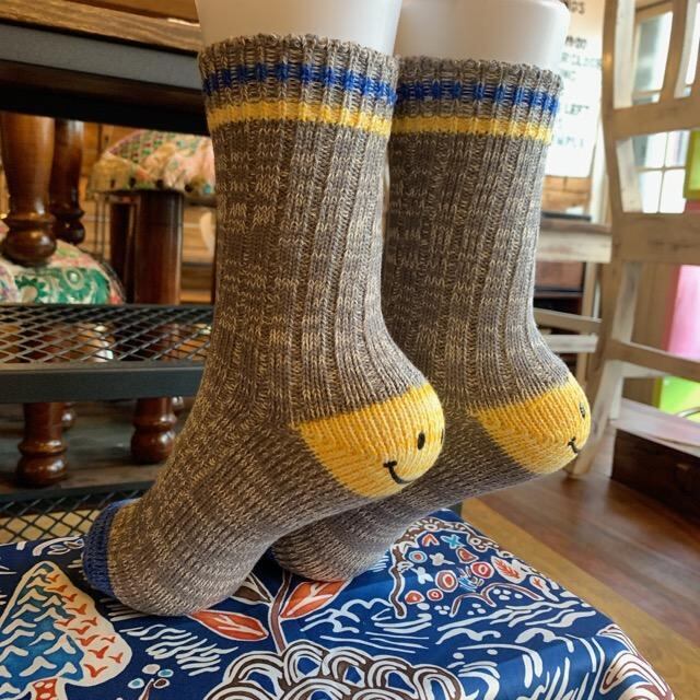 かかとからにこちゃんがさりげなく覗く、ユニークなソックスです。
