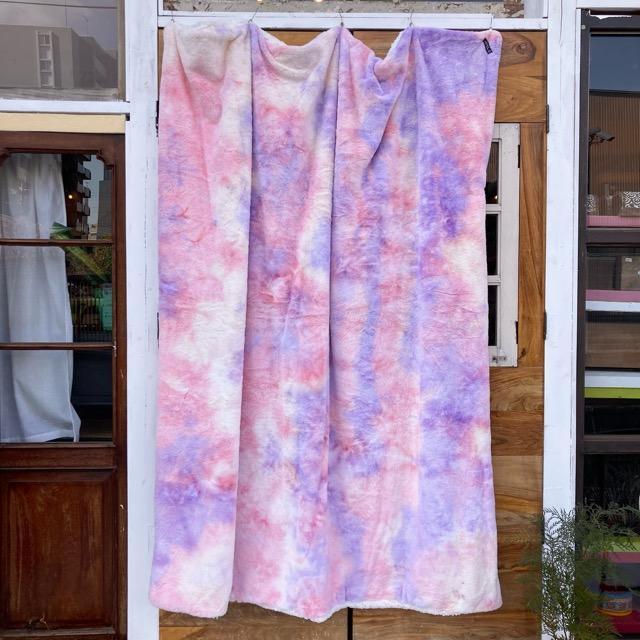 TOPANGA Homefurnishing フリース&ボアタイダイ染めブランケット 160×200cm ピンク×パープル ユニコーンカラー