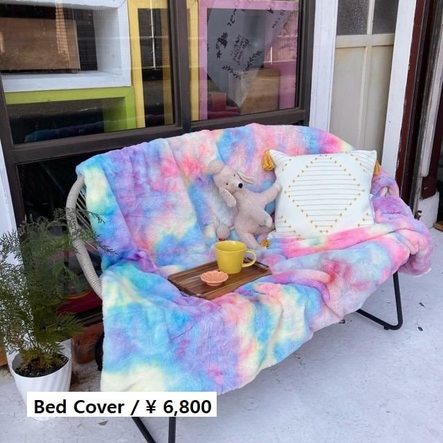 タイダイ染めのカラフルな色合いが目を惹くブランケット。