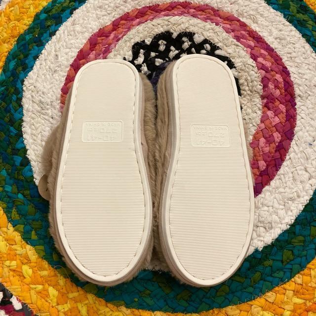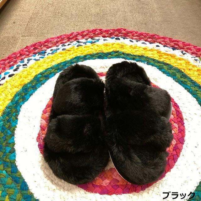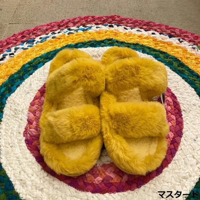 エコファー2バンドサンダルスリッパ 全6色 ベージュ ピンク ブルー ホワイト マスタード ブラック ルームシューズ 室内履き