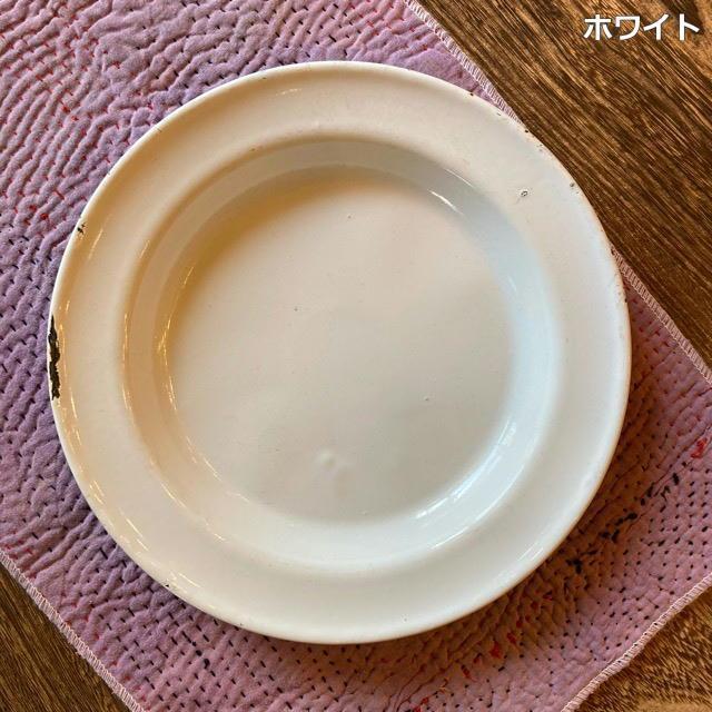 パキスタン ホーローラウンドプレート 全3色 ホワイト ミント イエロー 皿 平皿 アジア料理 大皿 琺瑯