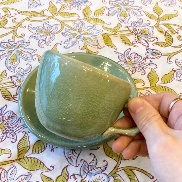 タイ セラドン焼 カップ&ソーサー タイ料理 アジアン料理 民芸品 翡翠 コーヒー 紅茶 ティーカップ コーヒーカップ マグカップ