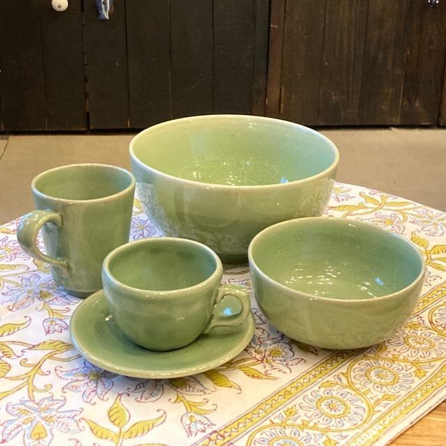 美しい翡翠のようなグリーンと繊細なひび模様が特徴です。