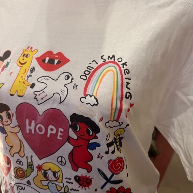 Tシャツ全面にお絵描き風デザインがプリントされたかわいいTシャツ。