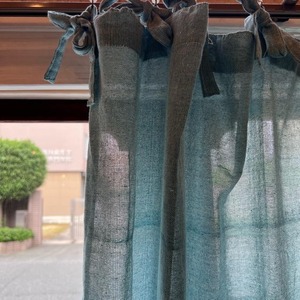 シャンブレーカーテン パシフィックブルー 110×180cm インテリア カーテン リボンタイプ インド コットン