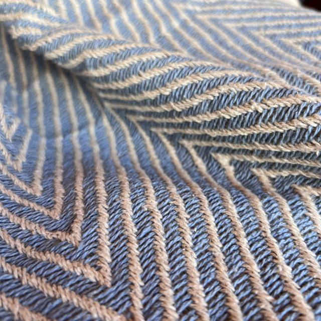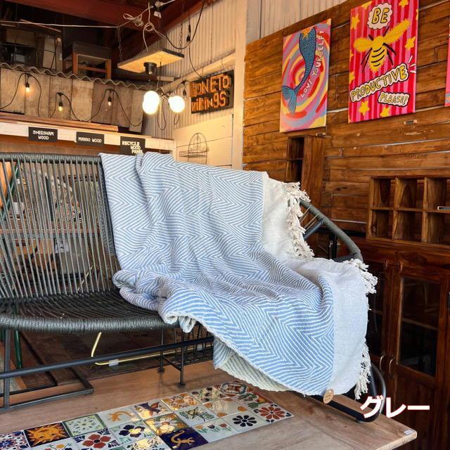 コットンの糸で模様が織り込まれたマルチカバー。