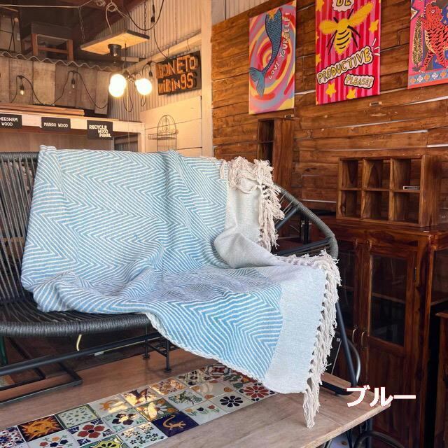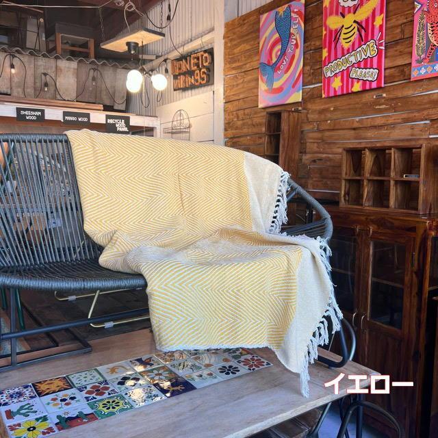 インド コットンスローウェーブ 140×200cm 全4色 ブルー イエロー オリーブ グレー ベッドカバー マルチカバー ソファカバー インド綿