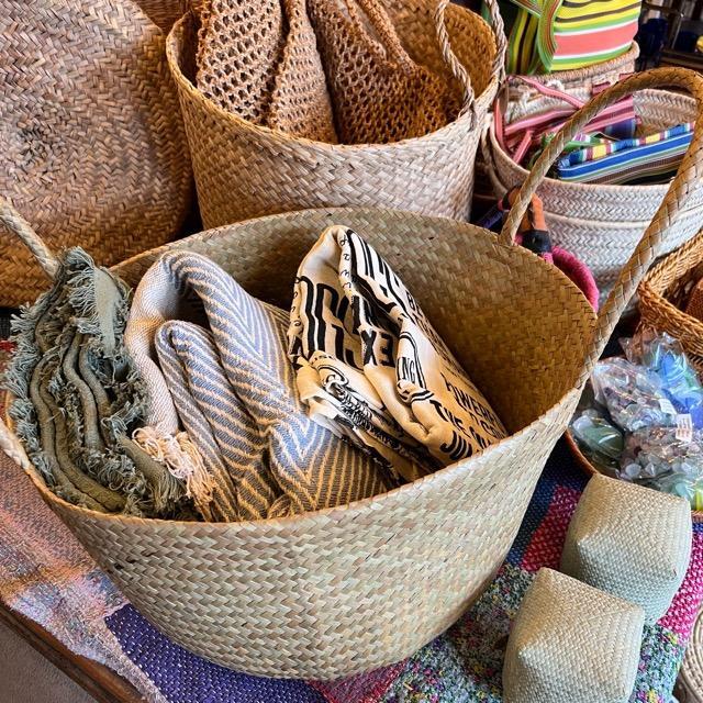 シーグラスかごバスケット Lサイズ 家具 インテリア 収納 小物入れ バスケット 持ち手付き ガーデニング 鉢カバー