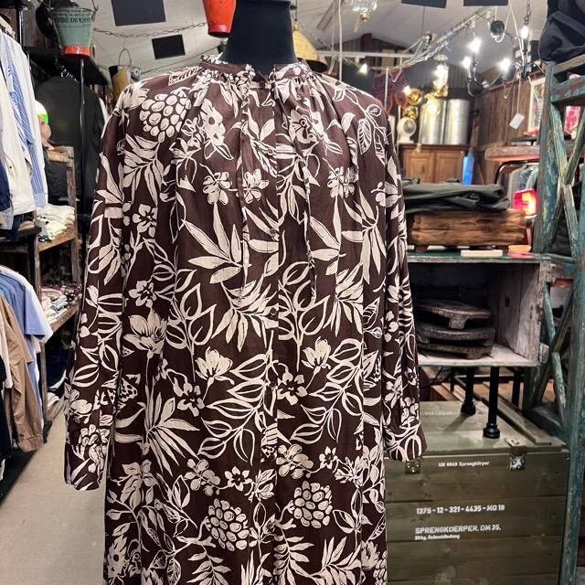 ICHI(イチ) フローラルC/Lワンピース ブラウン ファッション レディース ワンピース コットン リネン カジュアル
