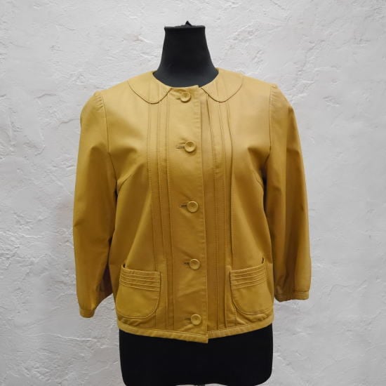 dual industry(デュアルインダストリー)カウレザーピンタックジャケット マスタードイエロー