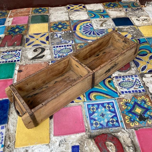 インド 木と鉄の古いレンガの型 Lサイズ 2連ボックス ウッドボックス 木箱 飾り棚 ウッドトレイ プランターカバー ウッド&アイアンボックス