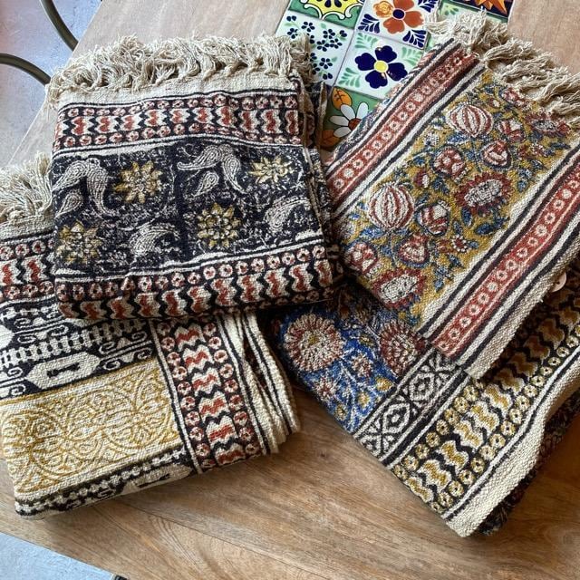 インドの職人さんが一つ一つ手作業で色をつけるブロックプリント。
