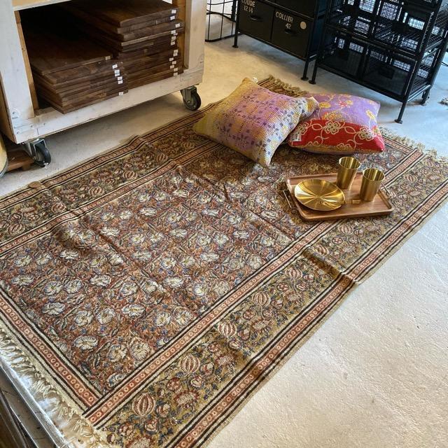 インド ブロックプリントラグマット 120×180cm レッド カーペット ソファ コットン 綿 花柄 フラワー 2人掛けソファ トライバル ボタニカル
