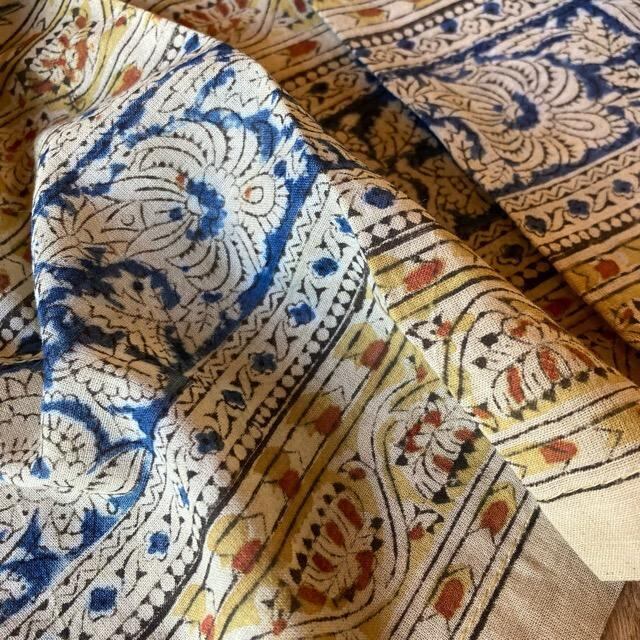 インド カラムカリドアカーテン 105×175cm ナチュラル シアーカーテン カーテンポール 暖簾 レースカーテン 木版プリント 草木染め