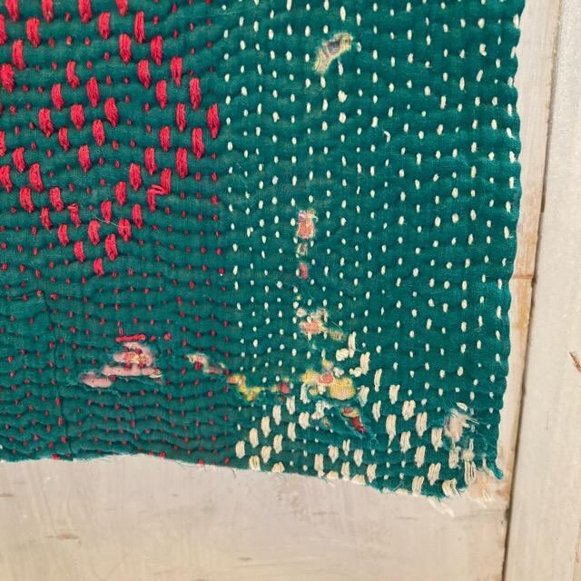 インド ヴィンテージラリーキルト 24000-15 140×200cm カンタ ベッドカバー ソファカバー マルチカバー ハンドメイド 1点もの ブルー グリーン