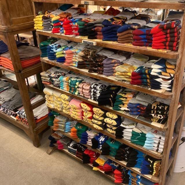 個性豊かなソックスなどの小物を合わせるスタイルを提案しています。