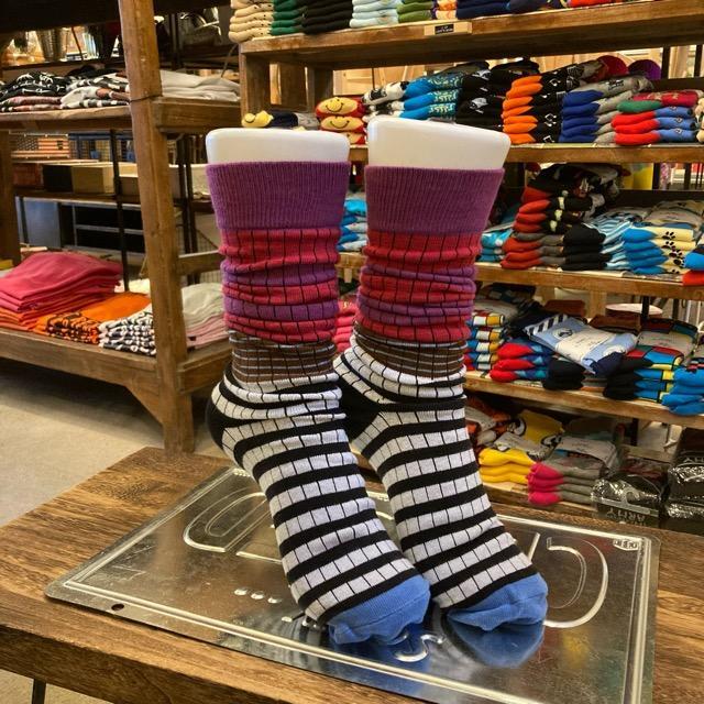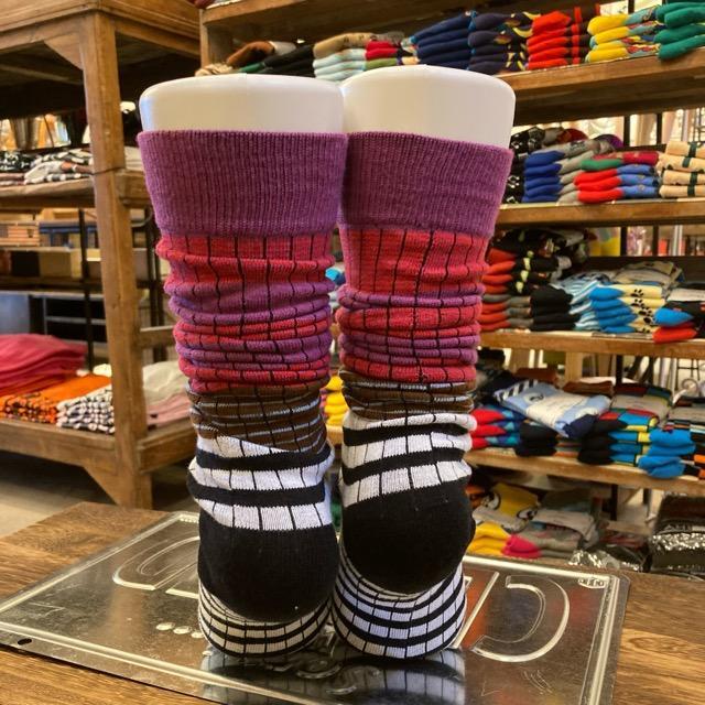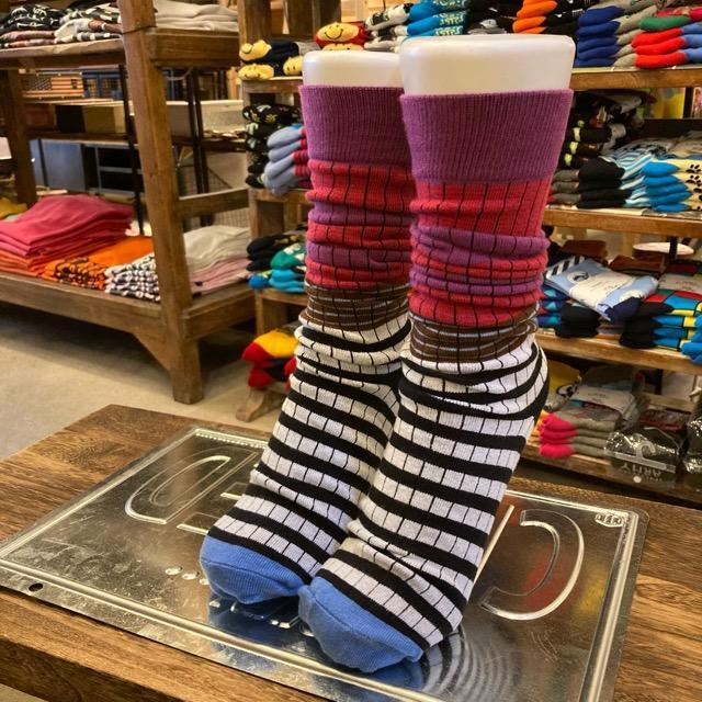 TOPANGA SOCKS Lady's クレイジーボーダーハイソックス ホワイト×パープル ファッション レディース 靴下 ユニーク プチギフト