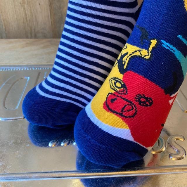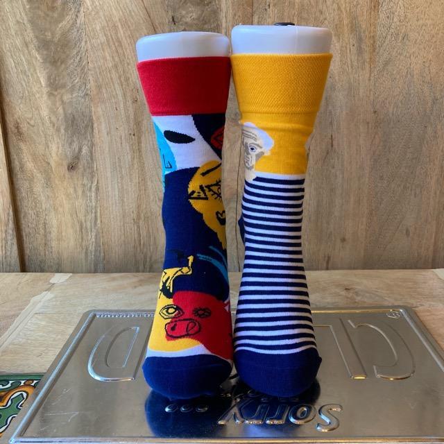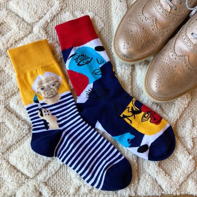 TOPANGA SOCKS Lady's アシンメトリーソックス Picasso ピカソ イエロー レッド アートソックス 靴下 ユニーク プチギフト クルーソックス