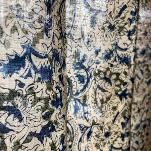 インド カラムカリ アカーテン 105x175cm ナチュラル シアーカーテン カーテンポール 暖簾 レースカーテン 更紗 間仕切り 木版プリント