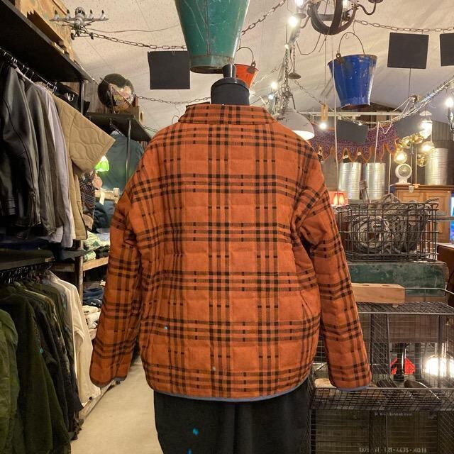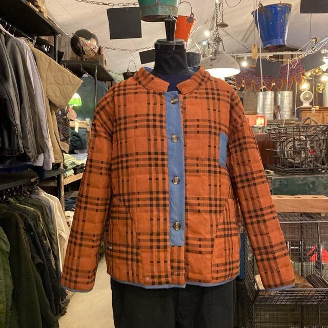 ブルーのパイピングが目を惹くキルティングジャケット。