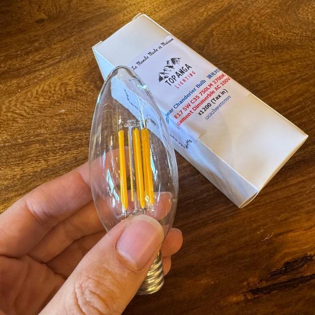 フィラメントタイプのクリアなLEDシャンデリア球 調光対応電球のご紹介です。