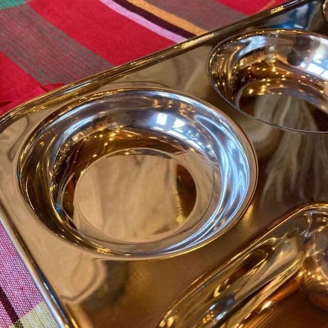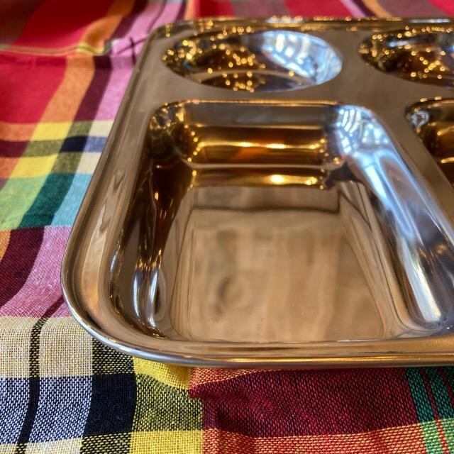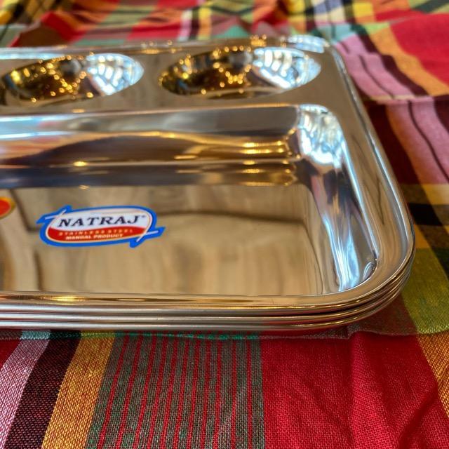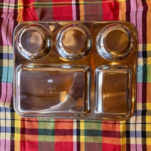 インドではランチプレートに限らず、食器などもステンレス製のものがよく使われています。