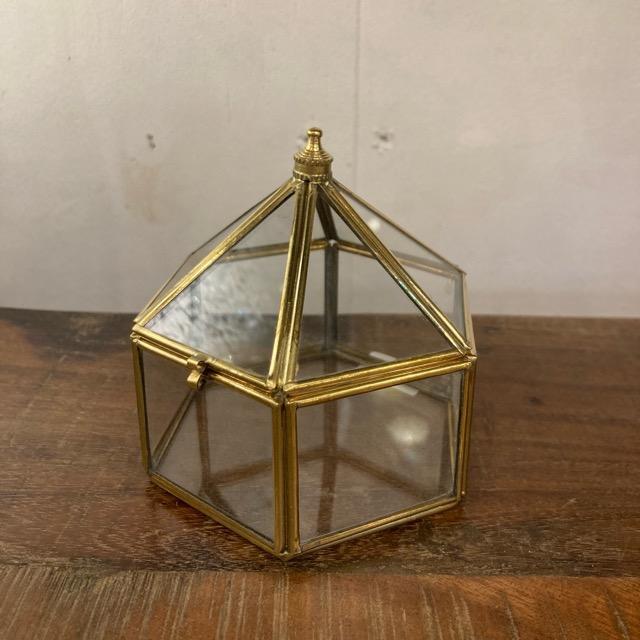 インドの職人さんが1点1点手作りしている立体ガラス六角ガラスボックス。