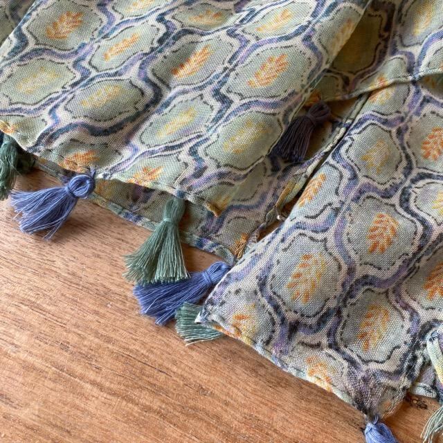 TOPANGA Accessory スムースタッセルビッグストール Vintage Tile グリーン スカーフ ショール マフラー 大判ストール 羽織 薄手 フリンジ 冷房対策
